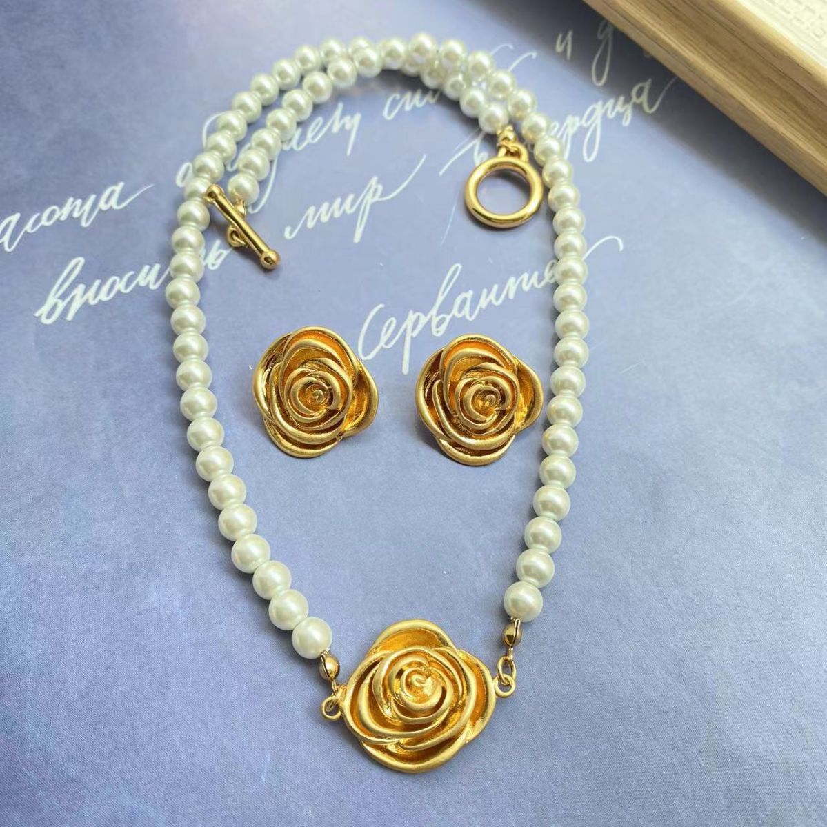 Flower Jewel Set Flower Stud Earrings Fashion Necklace Camelia Fashion Retro Jewellery Set